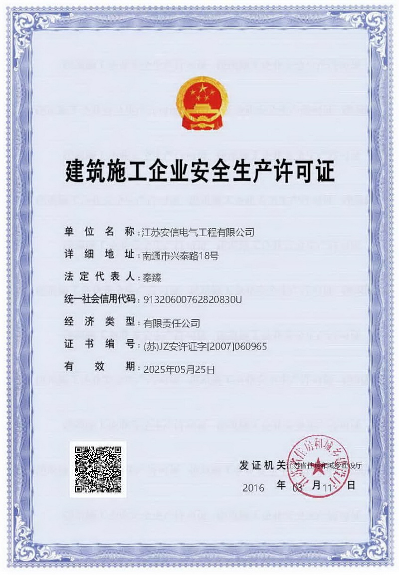 江蘇安信電氣工程有限公司,成立于2004年6月,注冊資金8188萬元,占地22000平方米,位于南通市興泰路18號,東接南通站、興東機場,西鄰南通西站、滬蘇通公鐵長江大橋,交通便捷。